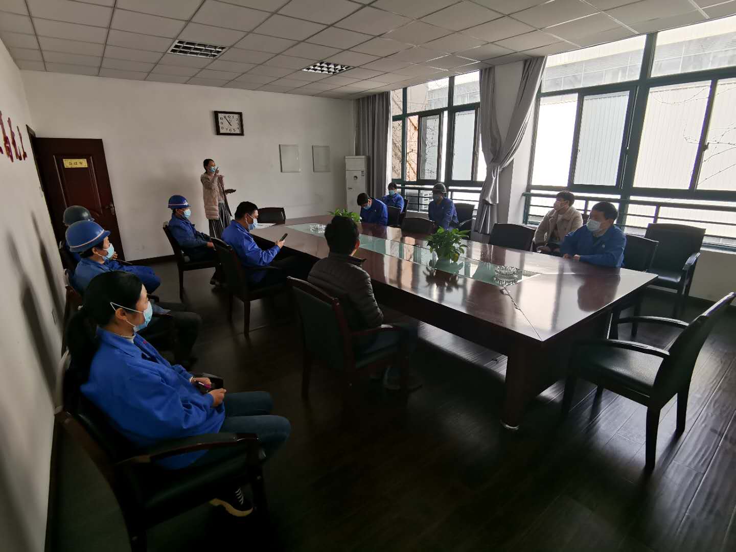 開工后每日對廠房、辦公樓、食堂、宿舍等人員密集場所進行(3次)消殺,對進出廠區、宿舍的員工進行兩次體溫監測,要求員工全員全程佩戴口罩上下班,中央空調暫停使用。